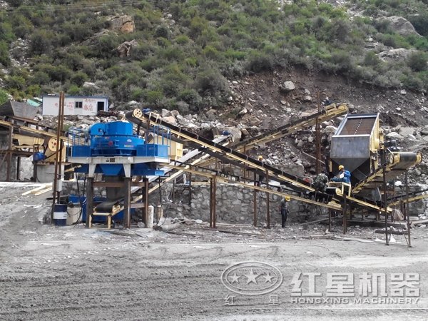 機(jī)制砂生產(chǎn)線現(xiàn)場(chǎng)圖,圓錐破更適合破碎硬度大的物料